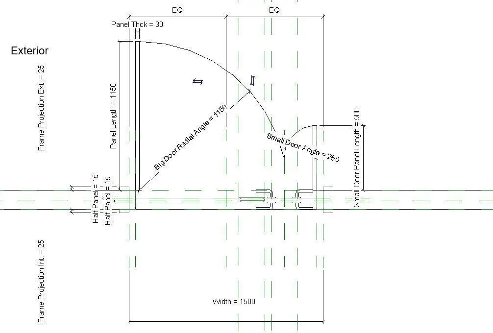 250(W) x 2100(H) 1 AND A HALF LEAF FLUSH DOOR WITH VIEWING PANEL.