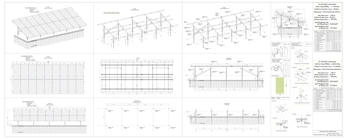 1 solar panel steel construction produces 9,9 kWp power in 1 hour