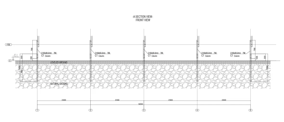Distance of Columns Below Ground 900 mm.