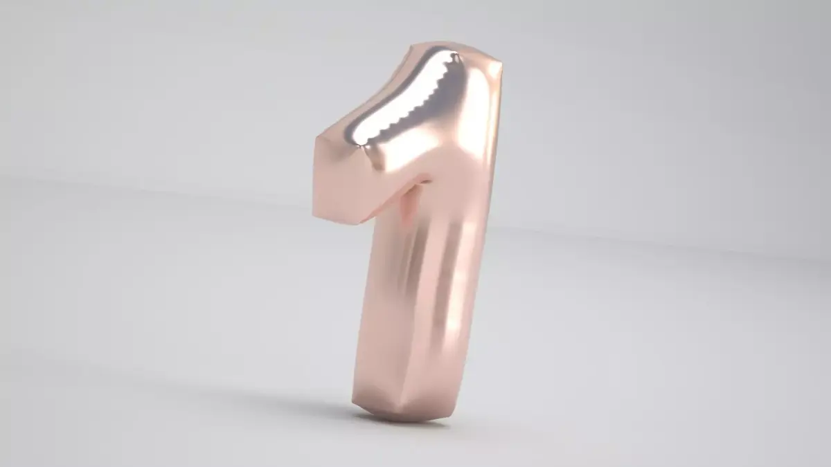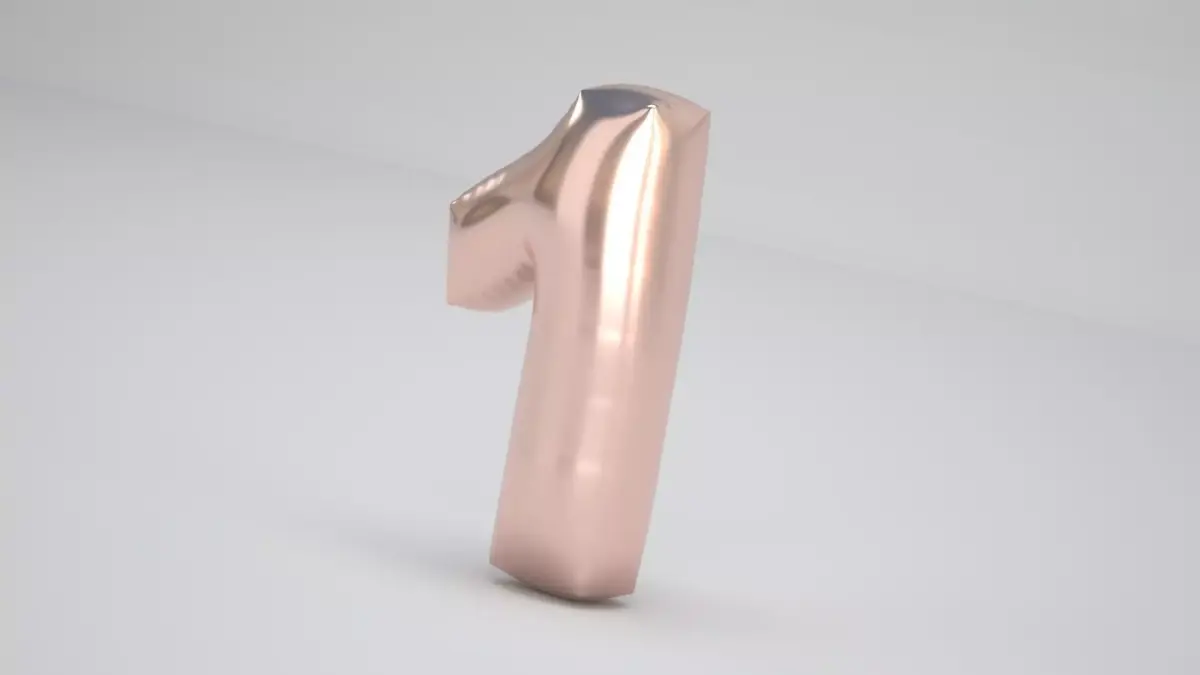 Realistic 3D Model OF Balloon 1 Number Copper