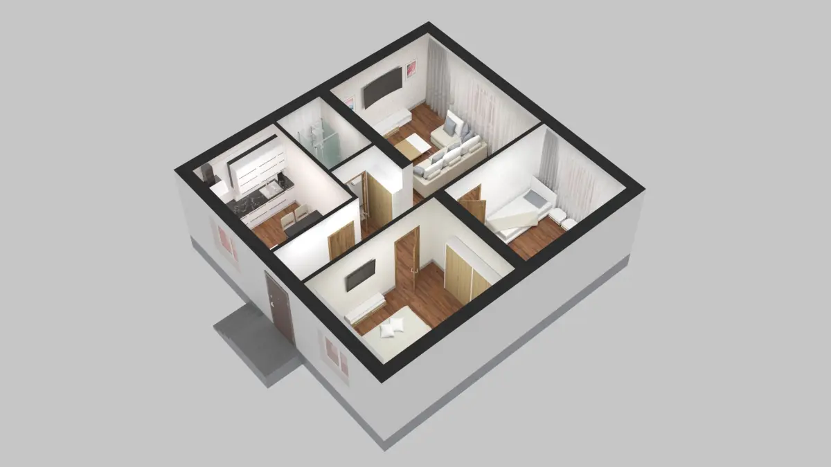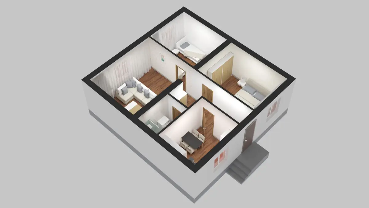 1 Storey House 3D Plan 2 rooms.