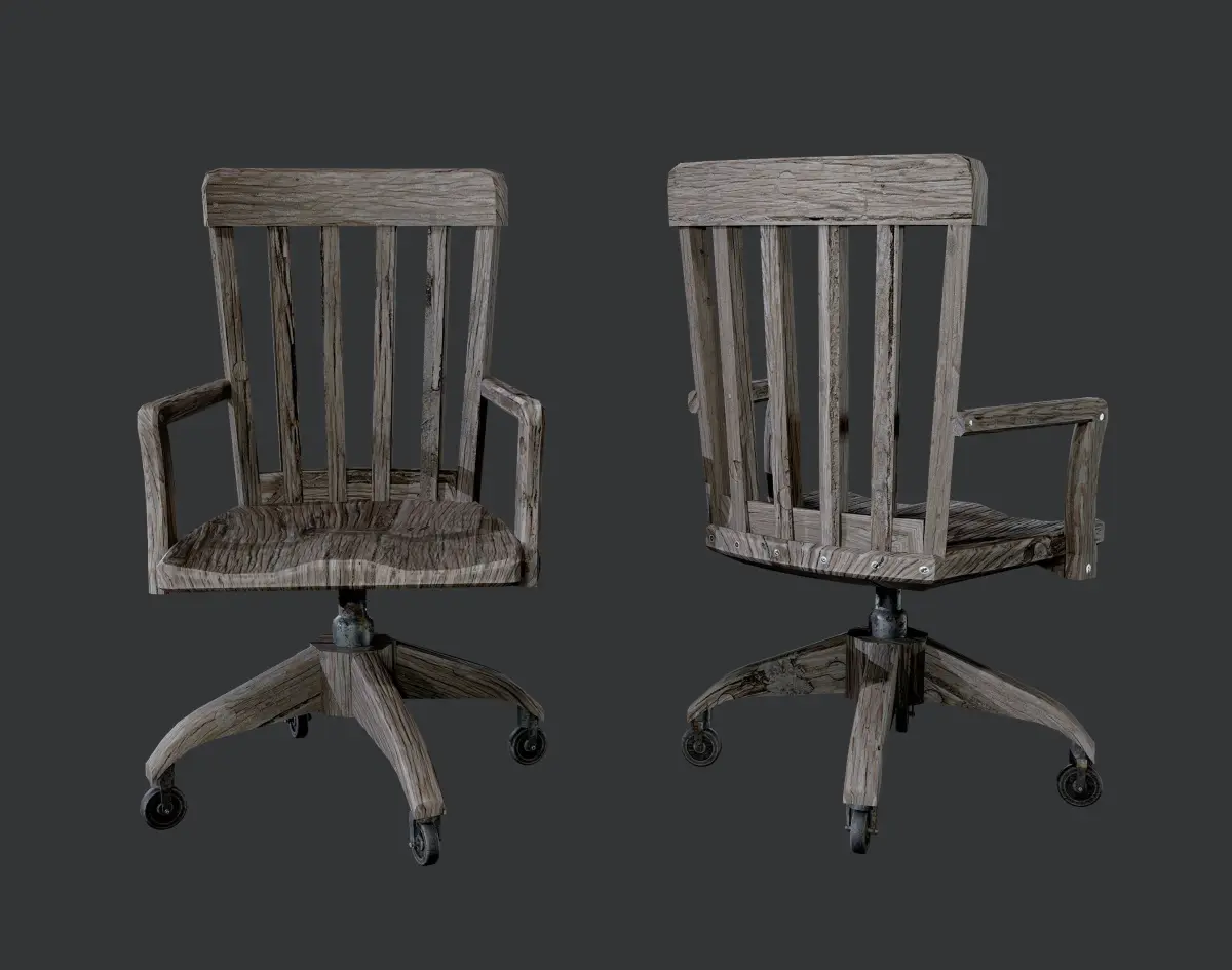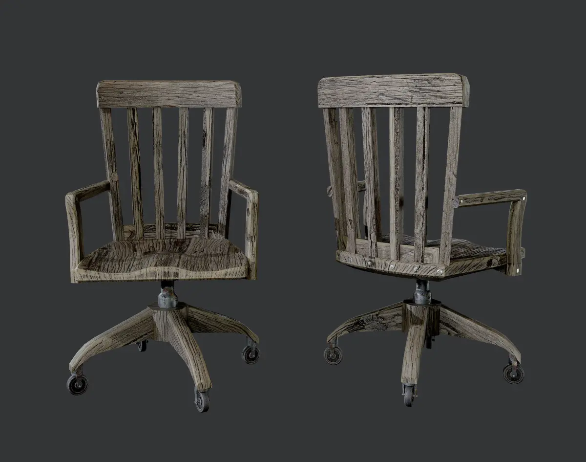 10 Low poly models of an antique desk chair, unwrapped with PBR textures. OBJ files, 3DS and FBX files. This pack contains 10 model options. Ready for use in any 3D software or game engine.