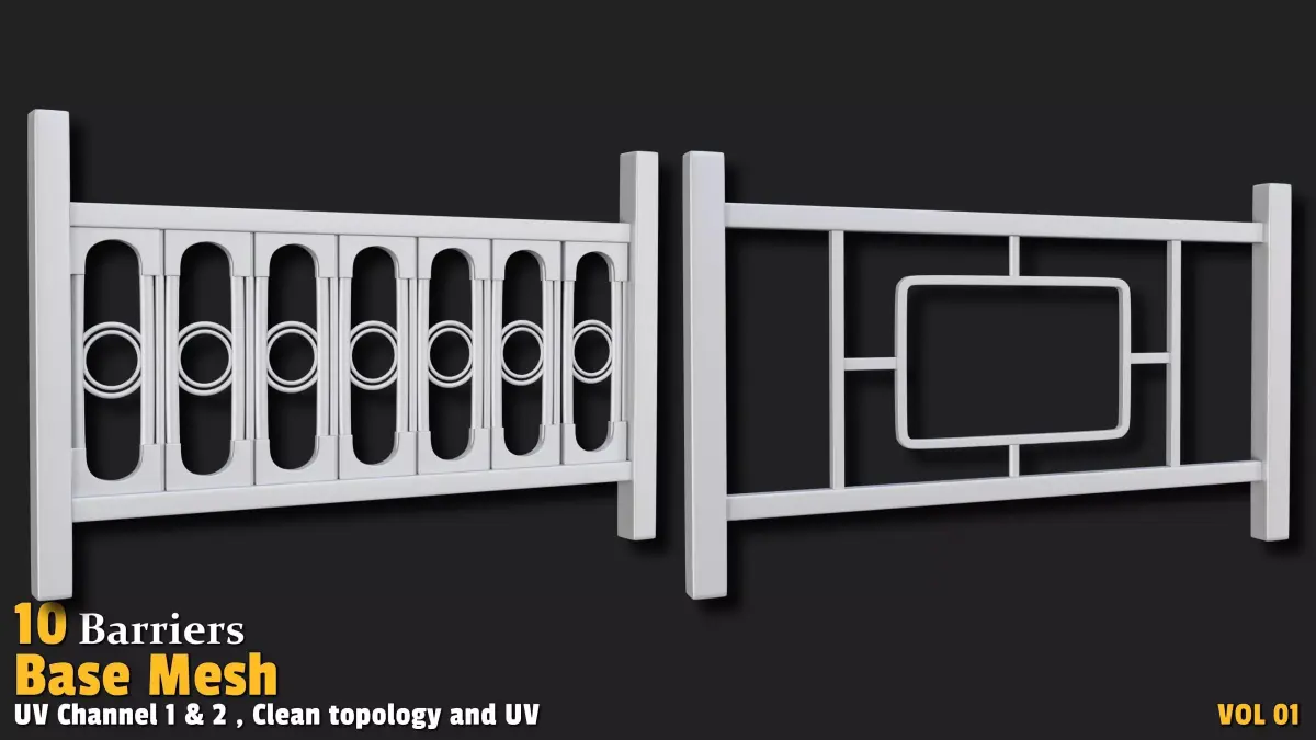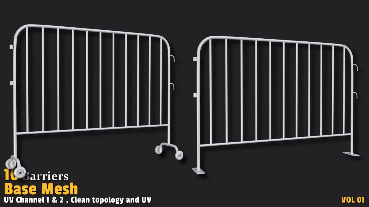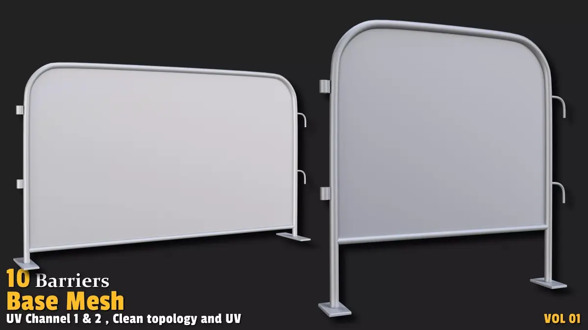 Control and enhance your 3D environments with this captivating collection of 10 barrier base mesh models! Designed for artists and developers, this Barriers set features designs with polygon counts ranging from 500 to 6,000, offering an excellent balance of detail and performance. Each model showcases a clean, quad-based topology and is UV-unwrapped with 2 texture channels (Channel 1 and 2), providing a solid foundation for texturing, material application, and customization. Perfect for urban scenes, game environments, industrial settings, or detailed renderings, these assets are highly versatile. Whether you're building a bustling city with traffic barriers, designing an action game with obstacles, or crafting professional visualizations, this collection delivers high-quality base meshes ready for seamless integration into your projects.