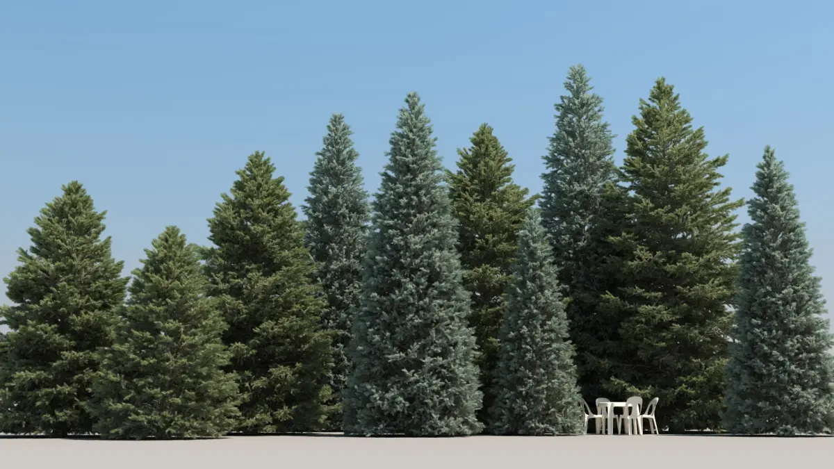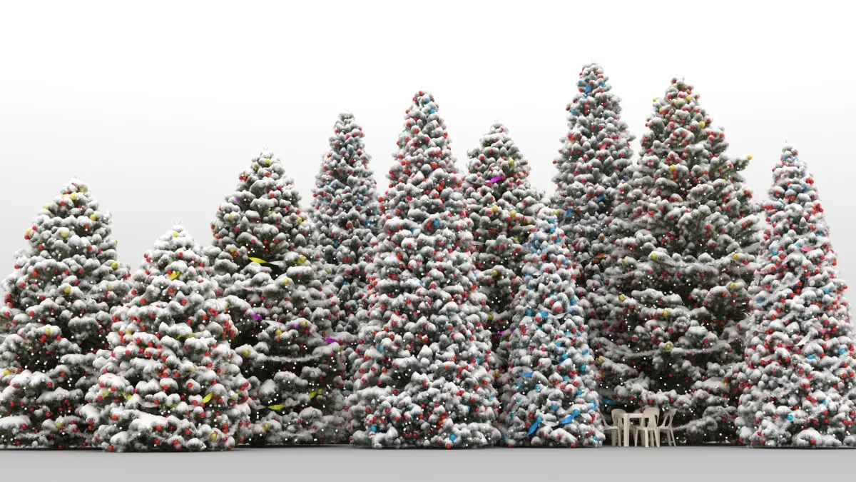 package contains 10 summer and 10 winter picea pungens christmas tree models. winter trees are exactly the same summer trees with snow. all ornament modules are seperate models.