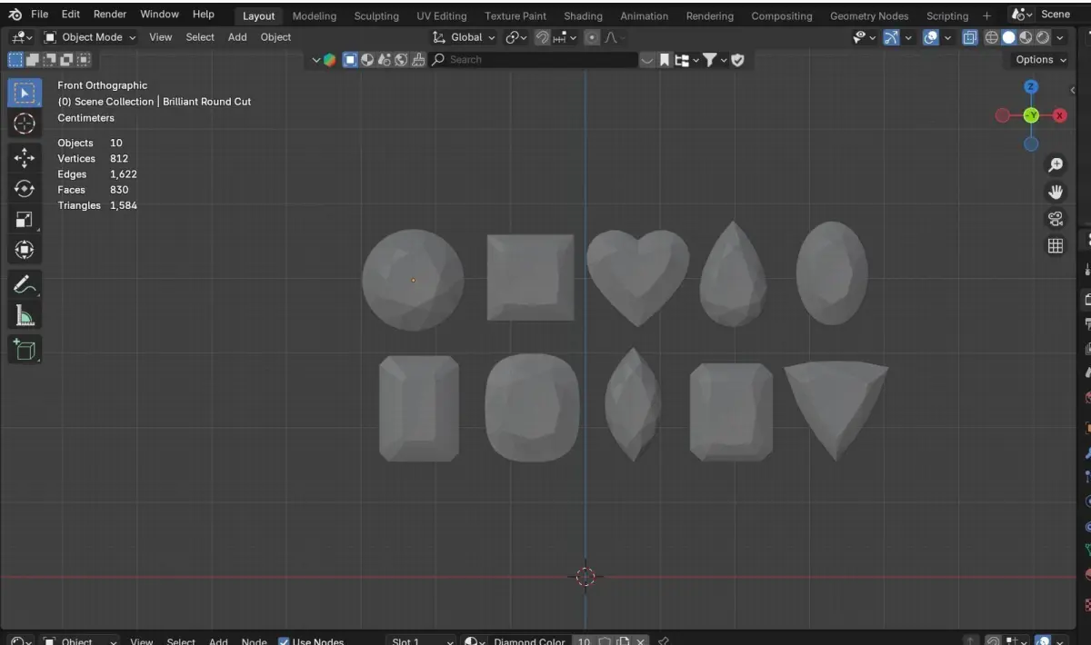This precisely crafted Diamond Cut Collection features 10 premium 3D diamond models, each representing a unique and popular gemstone cut. Created entirely in Blender, this set is perfect for use in jewelry visualization, animation, product rendering, and real-time applications.