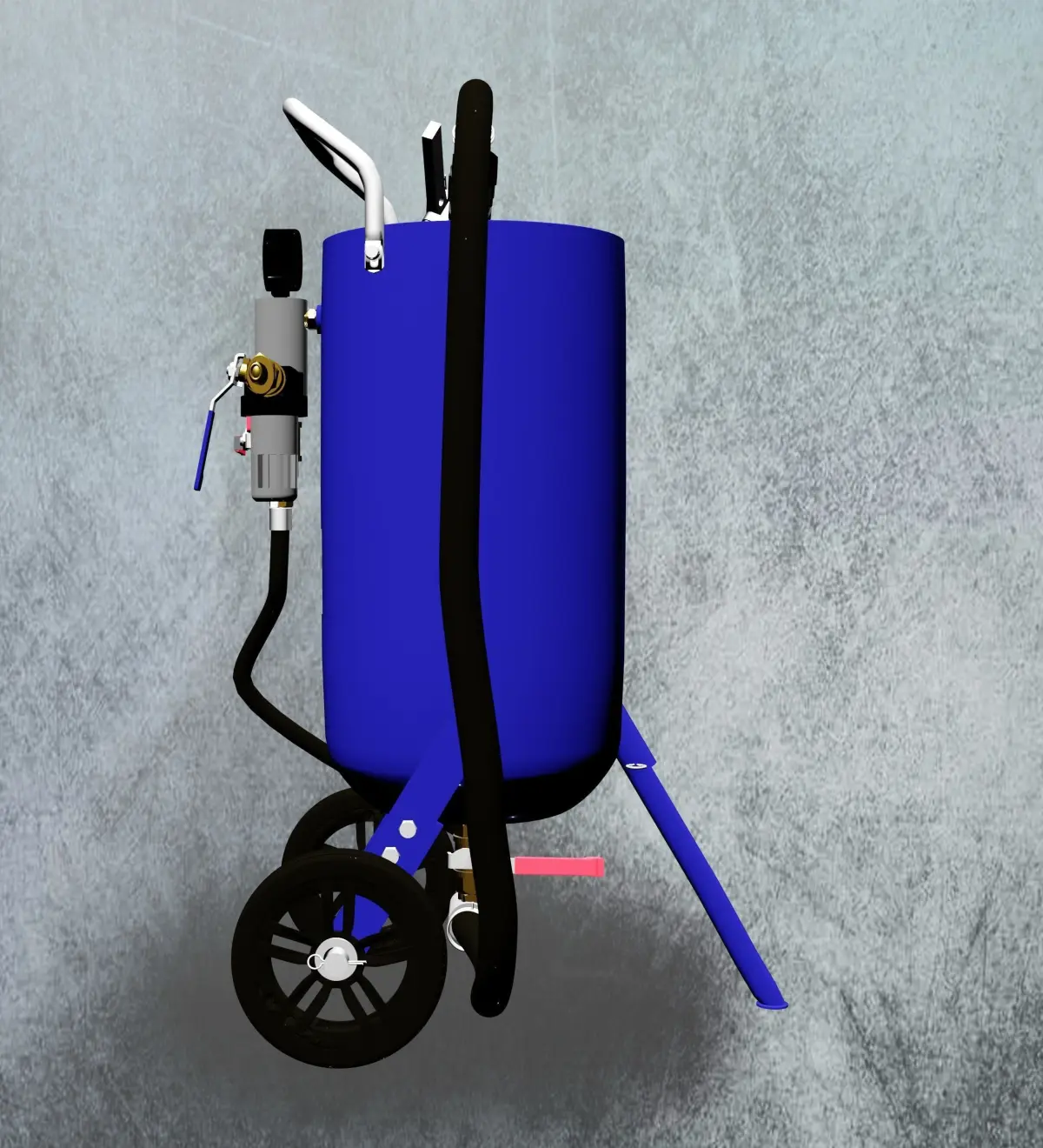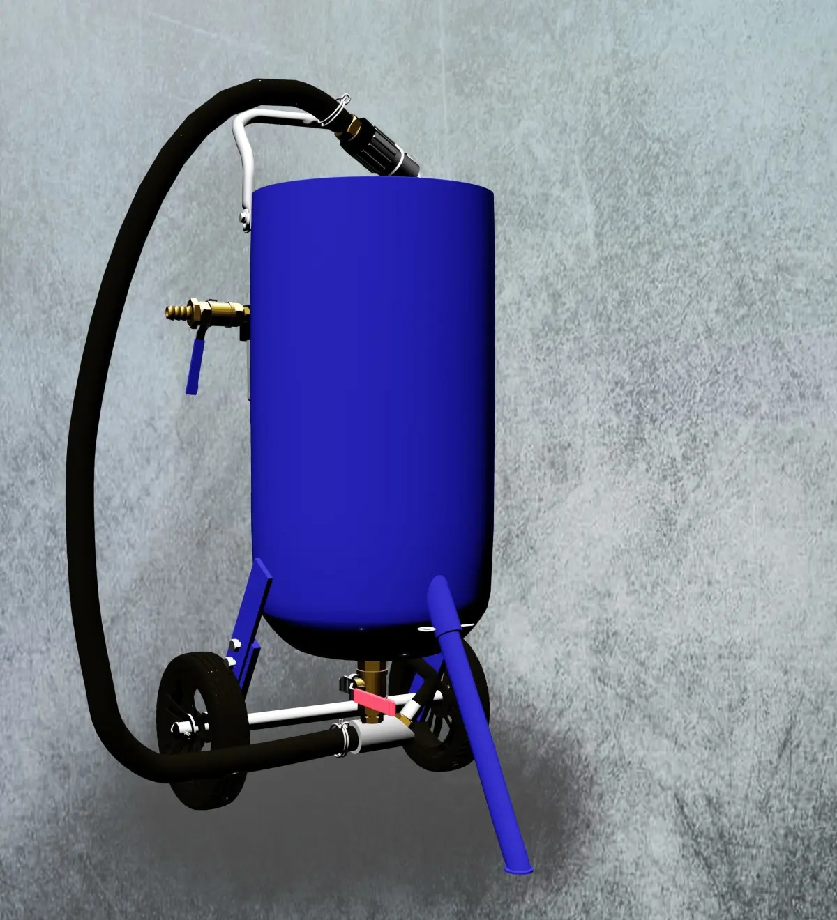 Standard basic sandblasting pot made in China ready for presentation, brochures, flers, parts manual (you need Blender or suitable 3D software for displace parts separatlty if you need that)