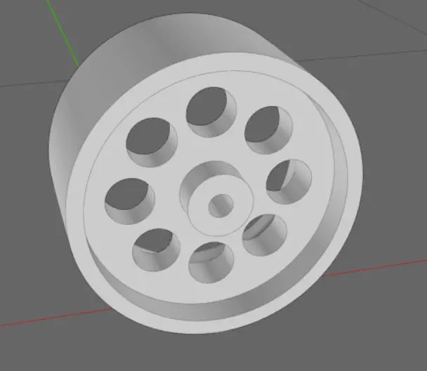 10 Hole 24/25 scale model car wheel. 18x9mm. 2mm backspace 1.5mm center ole for mounting but can be drilled out.