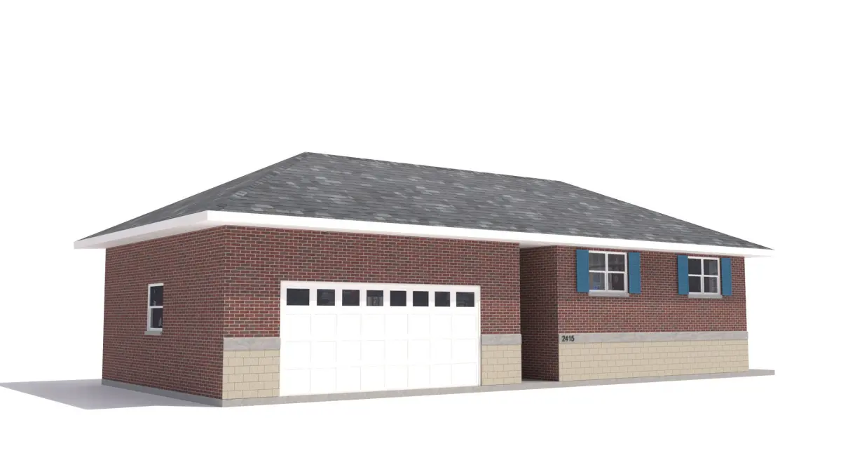 House-002- Low Poly 3D modelhttps://www.cgtrader.com/3d-models/exterior/house/home-002-Brick Home w. Stone base in front and shingled roof.-Home has two entries, one by garage, enclosed between garage and home, and second one on the side up concrete steps.54' x 56' x 18' High (to top of Roof) -If address text is removed poly count will get lower significantly to: Polygons: 4,667, Vertices: 6,698
