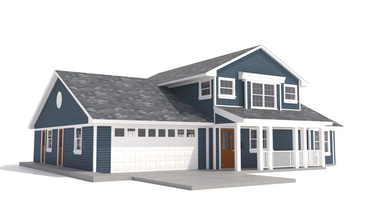 House-003 Low Poly 3D model-Low Poly High Detail modelhttps://www.cgtrader.com/3d-models/exterior/house/home-003-Two story Home w. Blue Siding and White trim & Garage -Home has a patio area in front with railing, patio area in rear with railing and a second story balcony with white wood railing.-58' x 40' x 24' High (to top of High Roof)-Polygons: 10,500, Vertices:15,512-Address Can be easily changed -Includes Mailbox in Front -Garage door has top row of windows. -White trim has wood Texture in bump for close up.