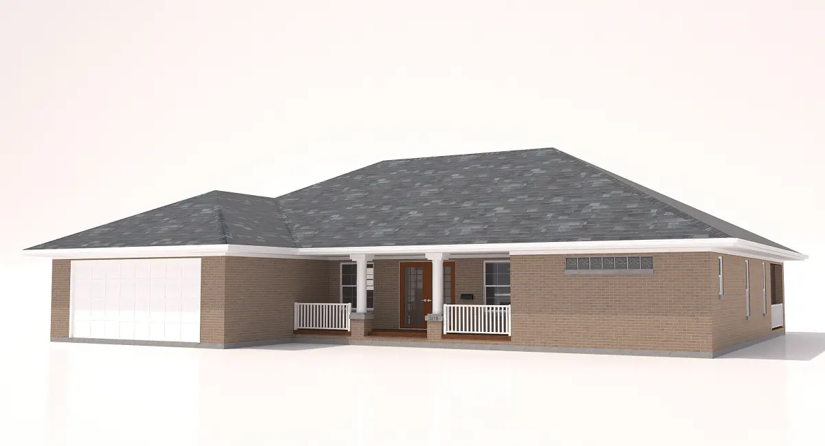House-004- Low Poly 3D model-Low Poly High Detail modelhttps://www.cgtrader.com/3d-models/exterior/house/home-004-low-poly-1 story Home w. Red Brick and garage. Patio area and Columns in Front. -Home has a patio area in front with railing and wooden deck as you enter, patio area in rear with railing and wood deck.45' x 65' x 19'-6High (to top of Roof)-Polygon: 5,791, Vertices: 8,585-If address text is removed poly count will get lower significantly-Includes Mailbox in Front & Address -Garage is 16'-0X Door x 7'-0"High -White trim has wood Texture in bump for close up.