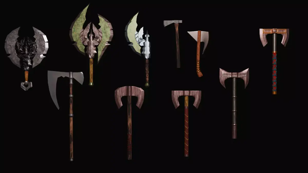 From rugged, primitive stone splitters to ornate, double-headed battle axes, this collection covers a wide range of combat styles and fantasy archetypes.
