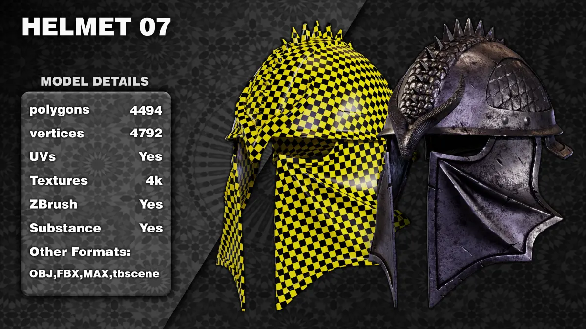 In this product, ten ancient helmet projects of different types of metal and leather have been worked. Ready to customize and use.Each model is well unwrapped, sculpted, optimized, baked and materialized.