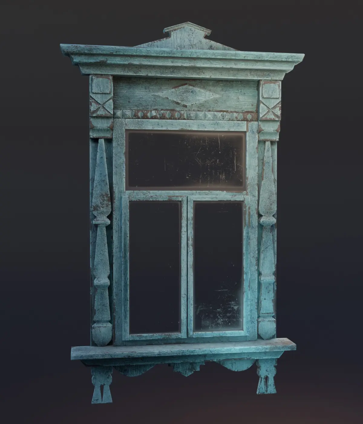 Pack of paint and dusty 10 windows for old architectures in country style.