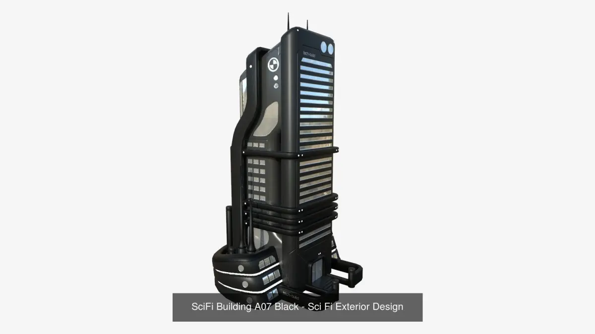 10 Sci Fi Buildings Collection G - Full Black - Exterior DesignNo interior designed, only building exterior - can be used as scene composition, scenery, etcThere are 10 different buildings.(I have the same collection with differente colors options on my profile, or a super collection pack including all colors)