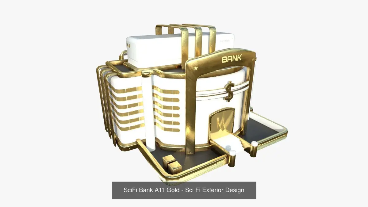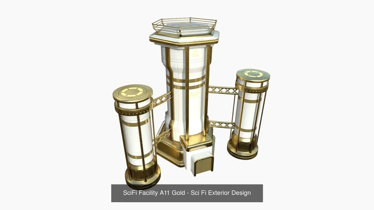 10 Sci Fi Buildings Collection K - Gold - Exterior DesignNo interior designed, only building exterior - can be used as scene composition, scenery, etcThere are 10 different buildings.(I have the same collection with differente colors options on my profile, or a super collection pack including all colors)
