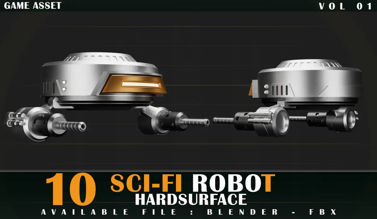 10 SCI-FI ROBOT GAME ASSETHello dear buyer.10 SCI-FI ROBOT GAME ASSETWith this product, you can speed up your modeling process and save a lot of timeAvailable formats :BlenderFBXBy purchasing this product, you can arrange and use your scenes or take it to texturing software for works of art and prepare it for other works.Or disassemble it and use it in other cases.In this product, as much as possible, efforts have been made to use less volume and be optimal.NO UVNO TEXTUREMy dear friendWe love our customers, and they are important to us.We will be happy if you support us with comments and ratings.Thank you.