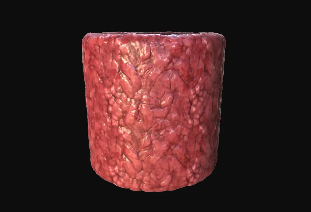 A collection of 10 seamless organic flesh PBR textures and materials. These textures are seamlessly tileable and could be particularly suitable for horror or sci-fi games.