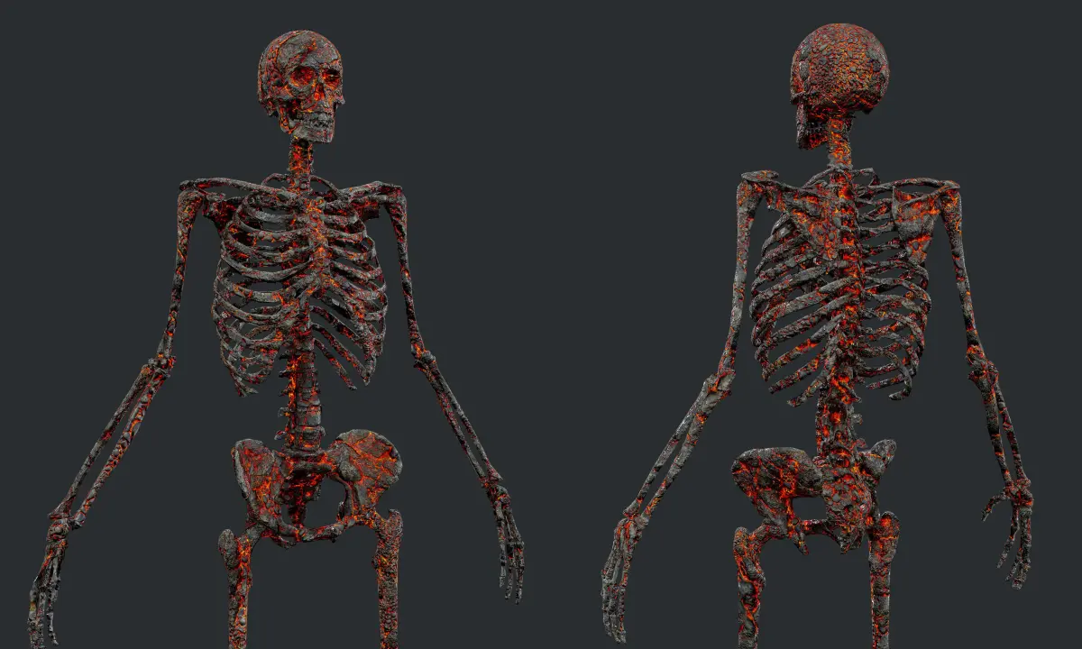 10 Low poly models of skeletons, unwrapped with PBR textures. OBJ files, 3DS and FBX files. This pack contains 10 model options. Ready for use in any 3D software or game engine. Parts can be easily seperated in any 3D software.