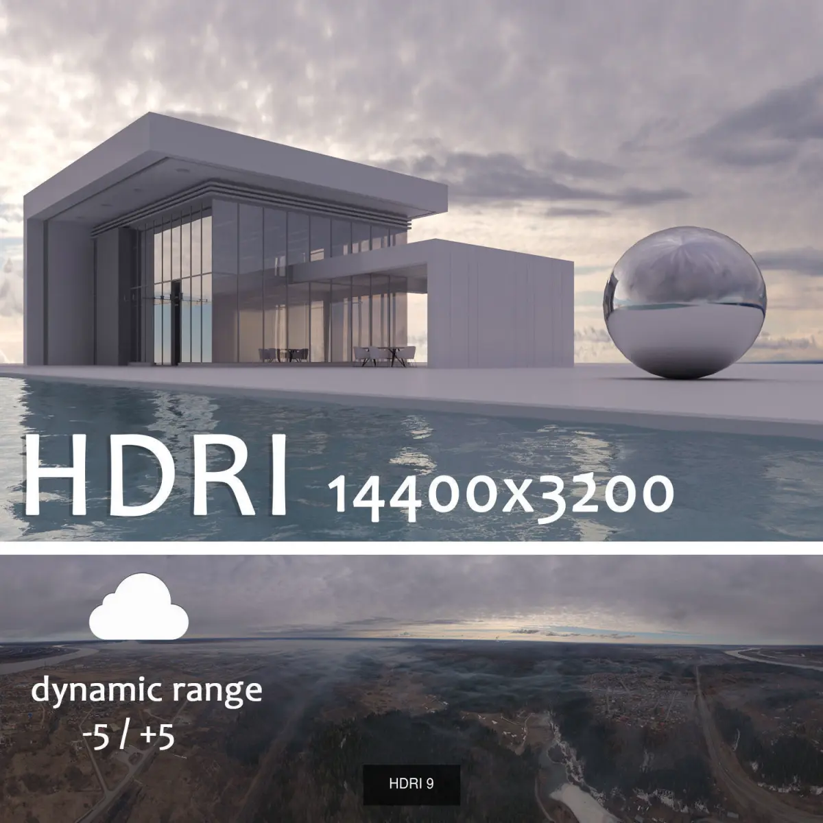 Type: Spherical HDR mapShot in 5 expositionsIn the archive:Format32-bit hdrJpg 8-bit (for the background)Taken from a quadrocopter. A feature of panoramas from a high altitude is a flat horizon with a good aerial perspective. The horizon line in the center of the frame.A model of a house with a swimming pool in the preview shows the lighting effect of an HDRI panorama. The house model is not archived.