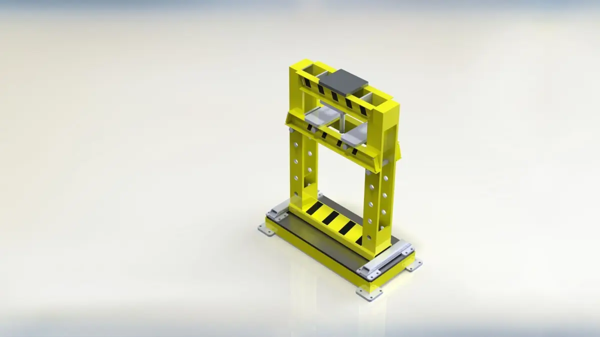 We present a meticulously engineered design for a hydraulic press frame, characterized by its high structural integrity and flexible customization options to suit a wide range of industrial applications. This frame is designed using advanced mechanical engineering principles, ensuring its ability to withstand hydraulic loads efficiently and safely.