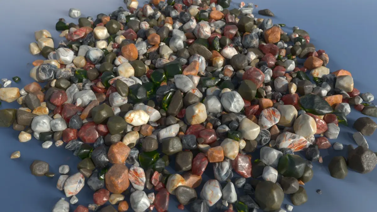 - The product includes 10 Debris Pebble Stones, each featuring various shapes, with each model having 10 different color texture versions. Therefore, you can combine them to obtain a diverse set of 100 3D stone models. You can scatter them to make your ground more vibrant and colorful.