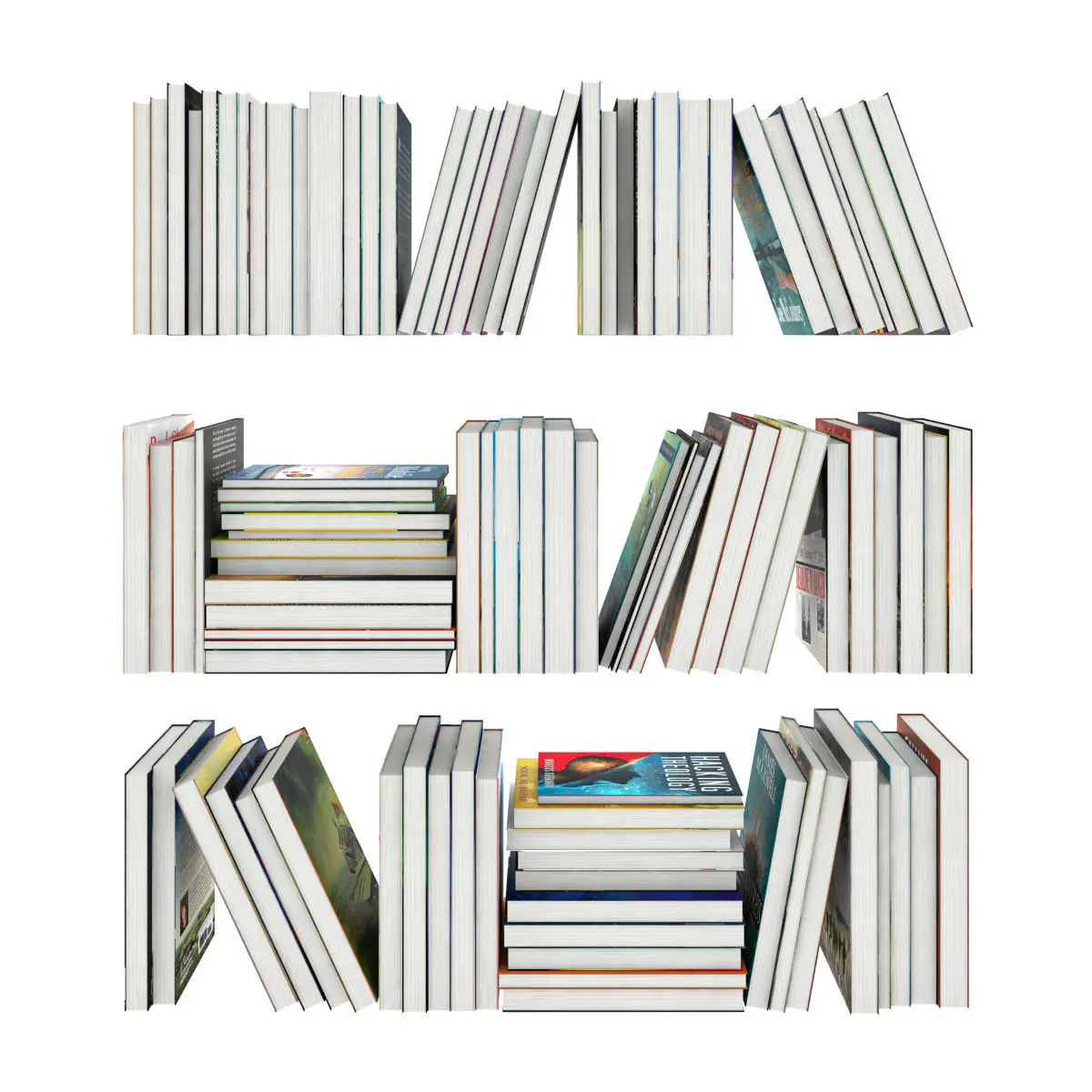 100 different books are modeled. Their coatings are carefully covered. Books are grouped. When you open it, you can sort the books according to your own intelligence. Each book consists of two elements when you select the element in the editablepoly tab. So it is very easy to change the coating.Coating: haveSize: mm