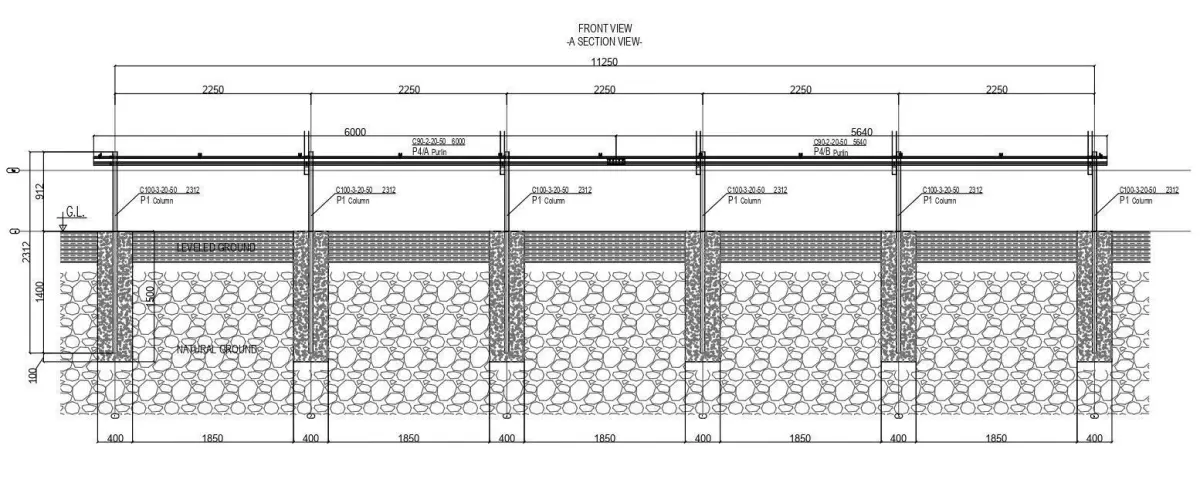 Distance of Columns Below Ground 1400 mm.