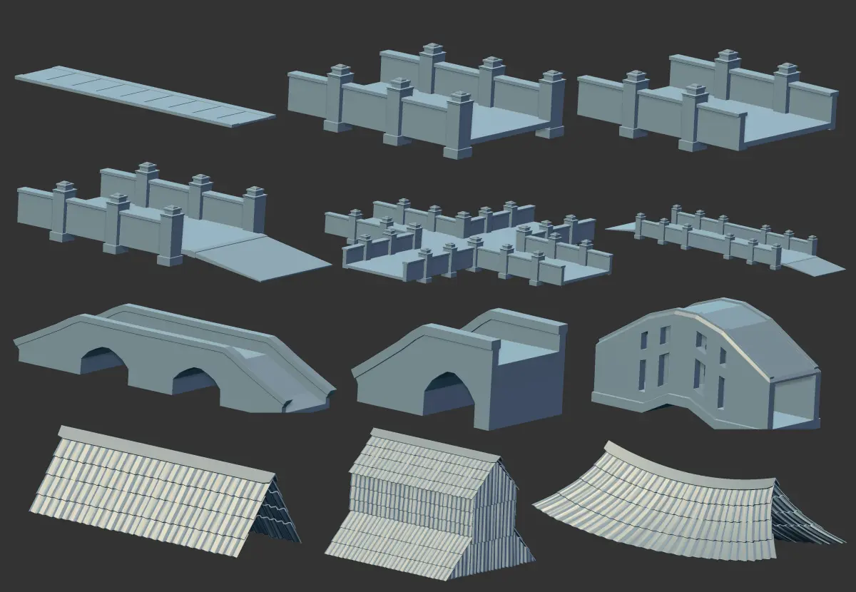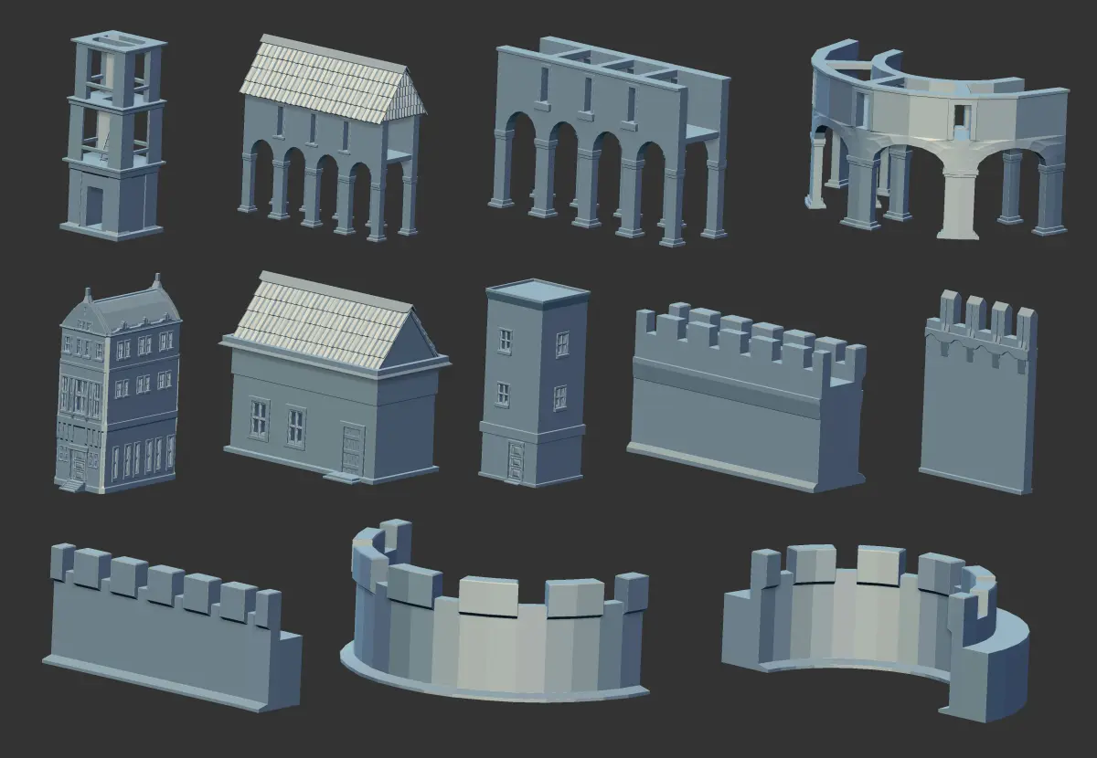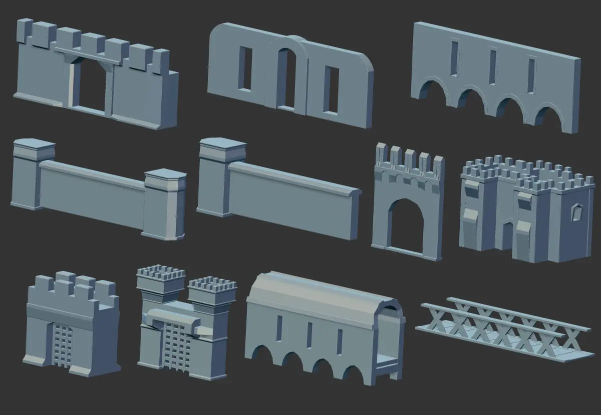 100 Low-poly medieval fantasy castle and fortress kitbash IMM Zbrush brush set, obj and fbx files.