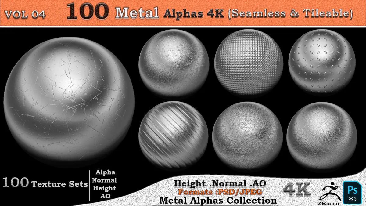 Hi everyone This pack includes 100 Metal Alphas Collection. You can see all of them in the image gallery