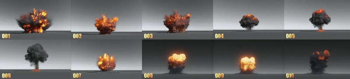 This Collection contains:-10 Explosions-5 Midair Explosions-5 Burning Cars-10 Meteorite/Smoke Tralils -20 Various Smoke Models-20 Clouds-20 Various Smoke/Fire Models