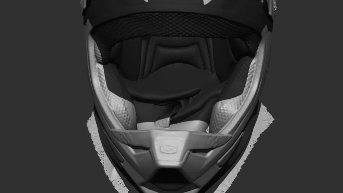 3D model of a motocross helmet by 100%, scanned with high precision to capture every detail of its original design. This model faithfully reflects the proportions and features of the helmet, making it perfect for design projects, product visualization, or as a reference for 3D modeling.