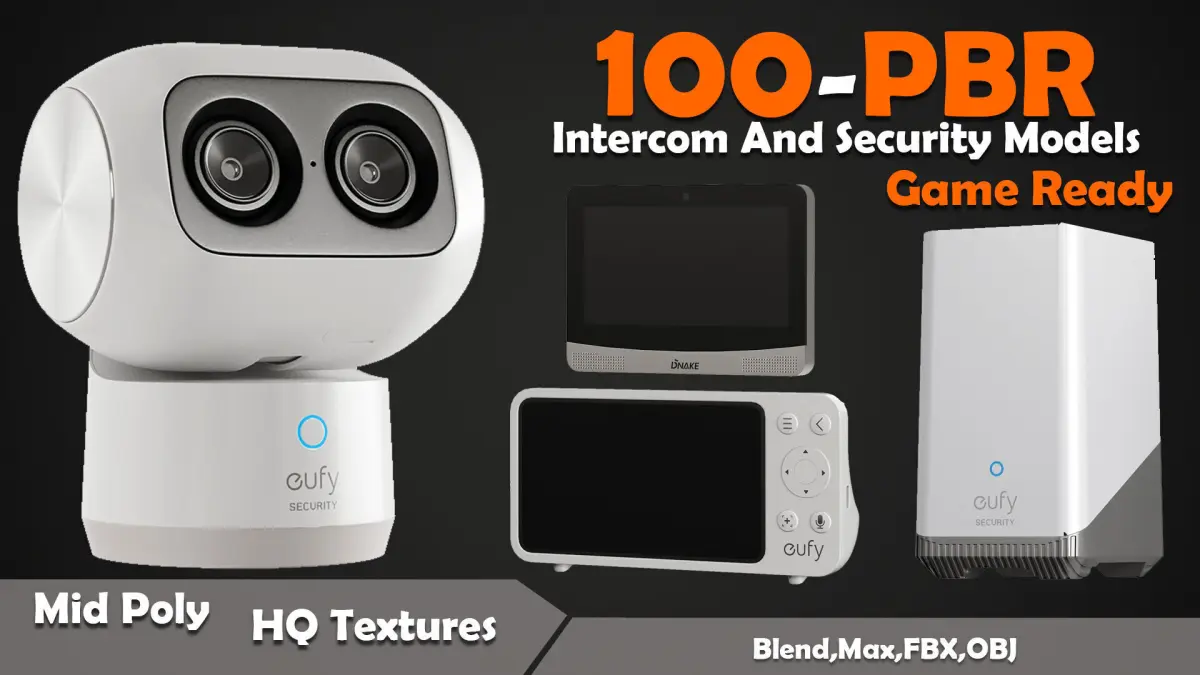 This collection includes 100 highly detailed models including cameras, door locks, and intercoms. The number and brands include:Set 1 Akuvox 11 Set 2 2N And Simple Safe 13Set 3 Aiphone And Philips 14 Set 4 Camera Set 4Set 5 Arlo And Toncont 14Set 6 eufy 8Set 7 Kaadas 10 Set 8 Dnake 9Set 9 Xeno and Aqara 11Set 10 Wlitokam 4 Max Version is 2018Vray And CoronaBlender Cycles Fbx And OBJ4k or 2k Textures