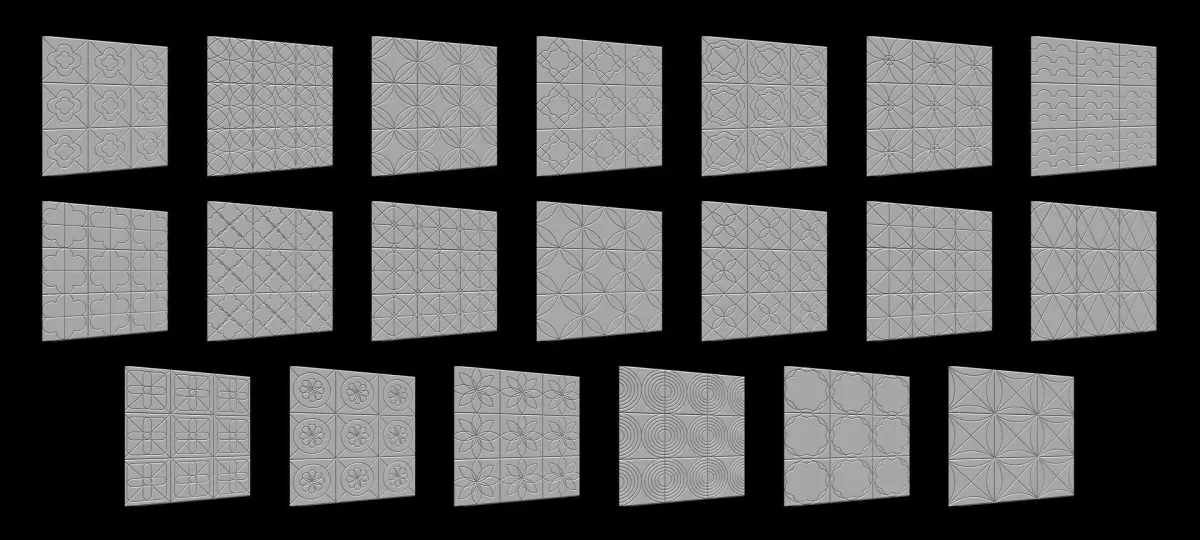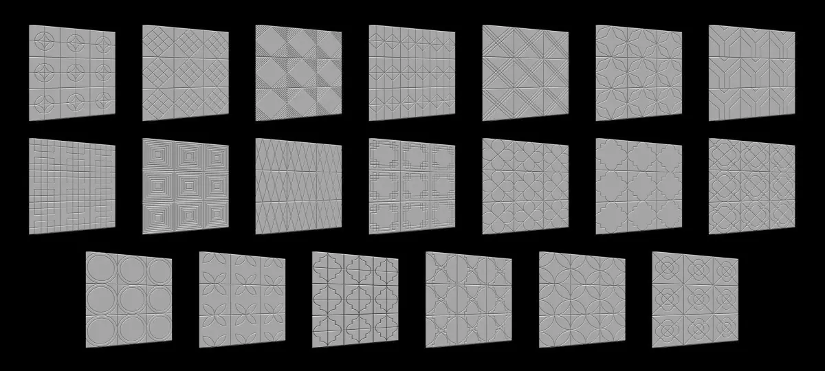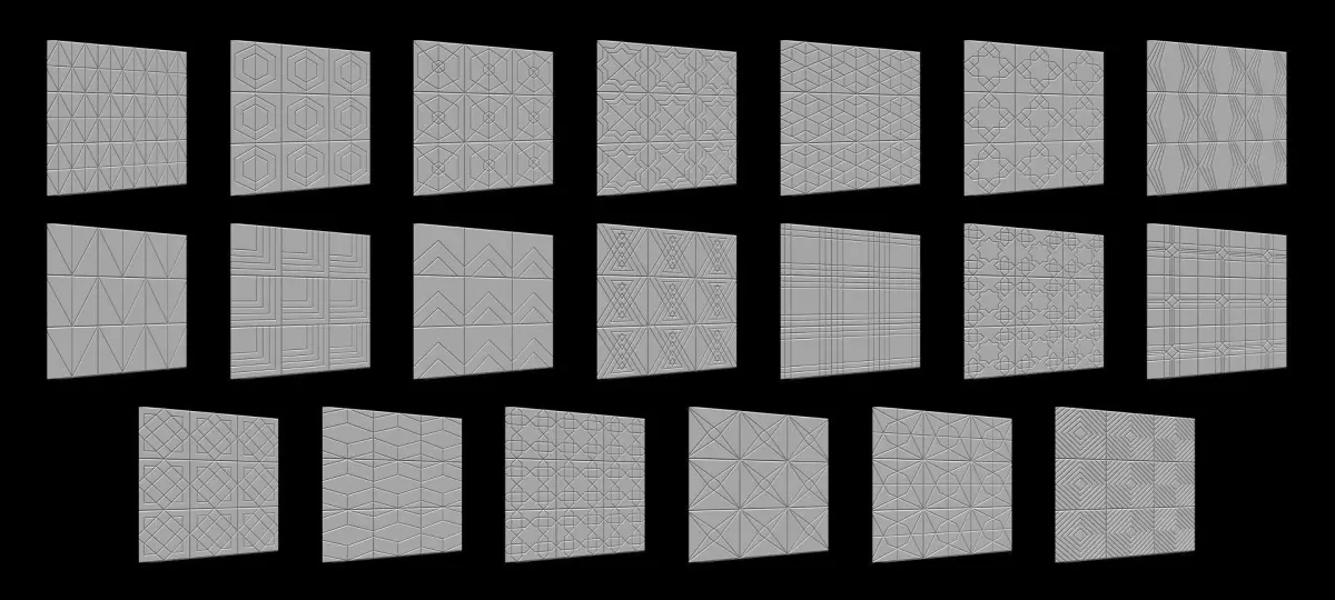 100 tiles patterns surface noise for Zbrush.