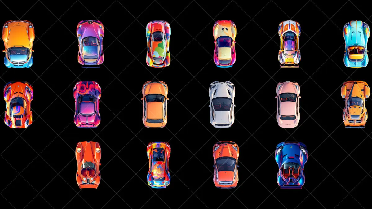 100 Transparent Fantasy Cars Top View 2D Game Asset.