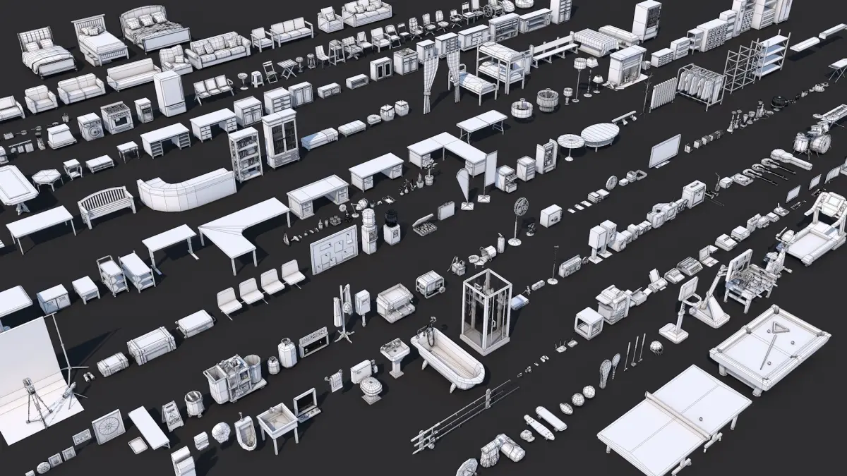 This is Mega Pack Collection of more than 1000+ unique items - Furniture | Light | Bathroom | House | Office | Music Instrument | Gym | Sports | Casino | Gym | Kids | Antique and many more...