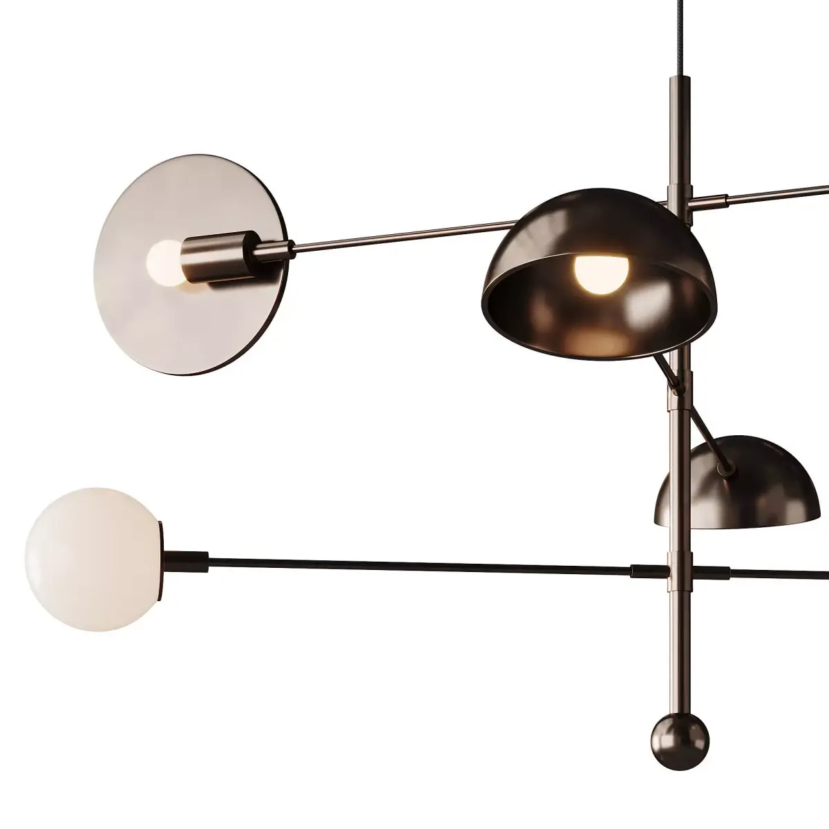 Description:High quality 3D model of the 101 Copenhagen Sahn Chandelier featuring a modern sculptural lighting design. The model includes metal arms, spherical glass bulbs, and dome-shaped shades arranged in a balanced and elegant composition. Ideal for interior visualization, architectural renders, and professional lighting design projects. Clean topology, accurate real-world scale, and optimized geometry make the model ready for production use. Fully compatible with Corona Renderer and V-Ray, suitable for residential, commercial, hotel, and luxury interior scenes.