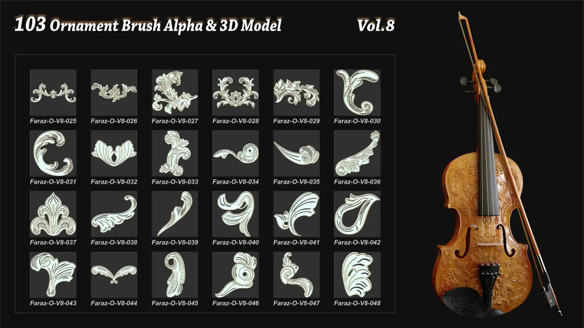 103 Ornament Brush Alpha 3D model Vol 8 3D model