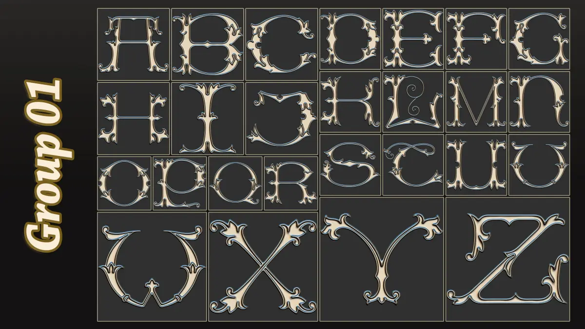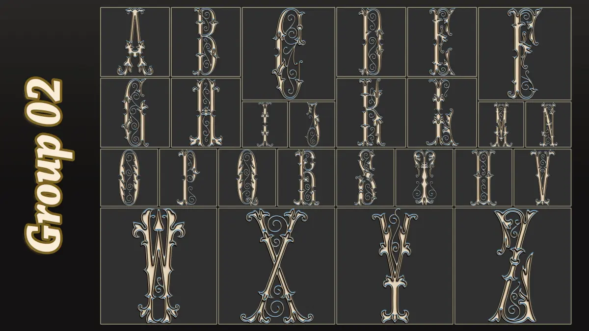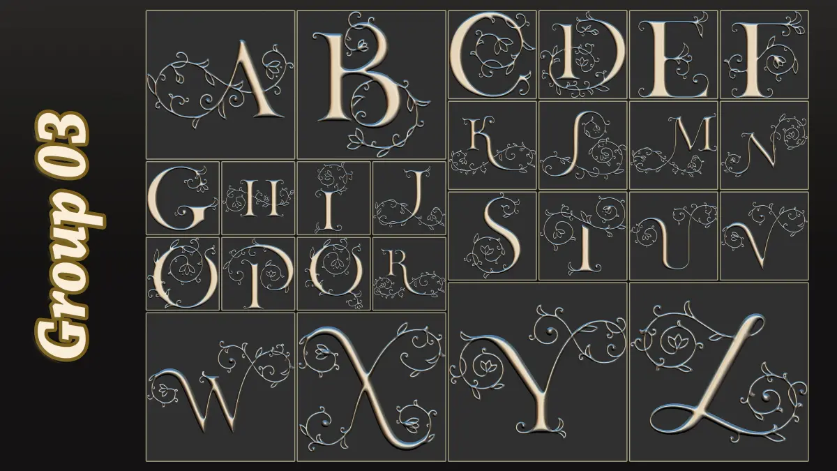 - 78 Ornamental Alphabet Alpha , Brush & 3D Models Vol 7