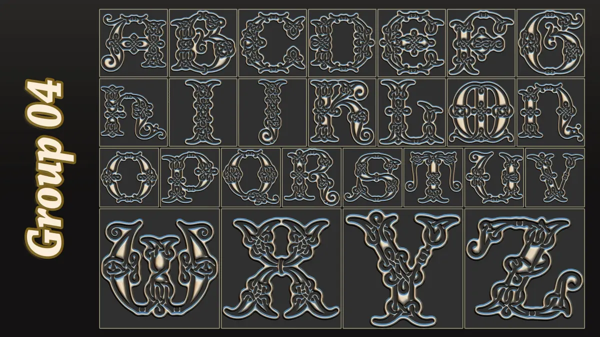 - 144 Ornamental Alphabet & Number Brush + Alpha + 3D model Vol 6