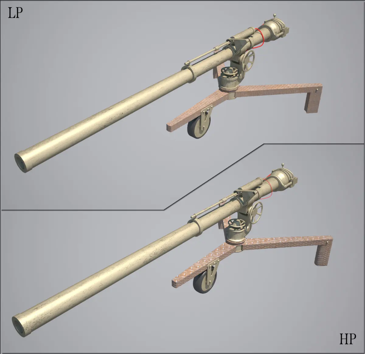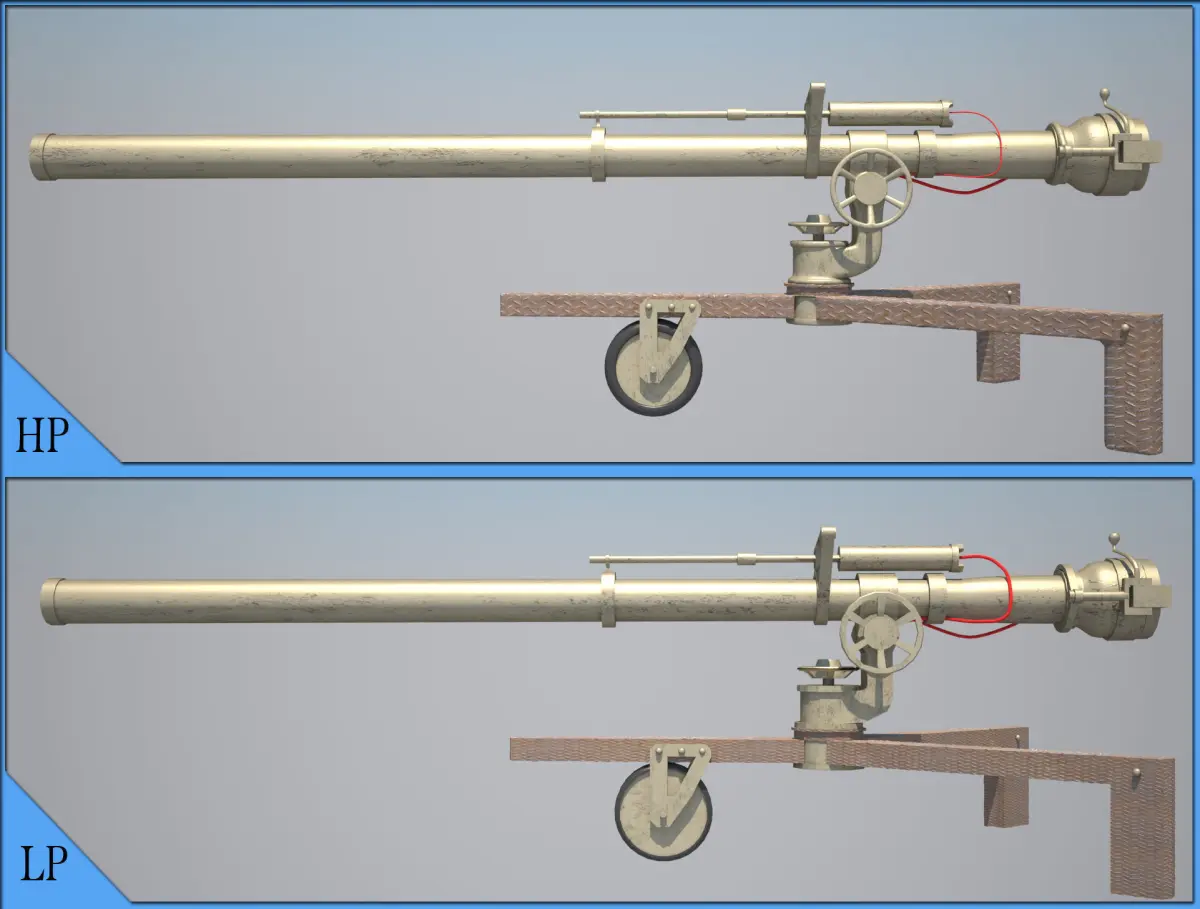 There are low poly (7500 polygons) and HI poly (138000 polygons) models of american 106 mm rifle