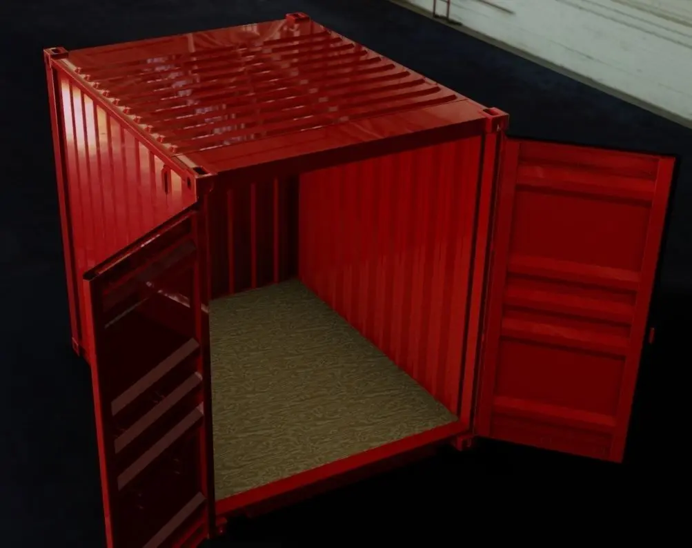 This a dimensionally and geometrically accurate 10ft long x 8ft wide x 9-1/2ft tall (High Cube) ISO Shipping Container. This is the version with the double doors on one end (the other end is corrugated). This model includes accurate details for the side walls, end wall, and roof corrugations. It even includes the door details and the details for all of the underneath c-channels. The corner block details and geometry were modeled off of the ISO specifications and tolerances.