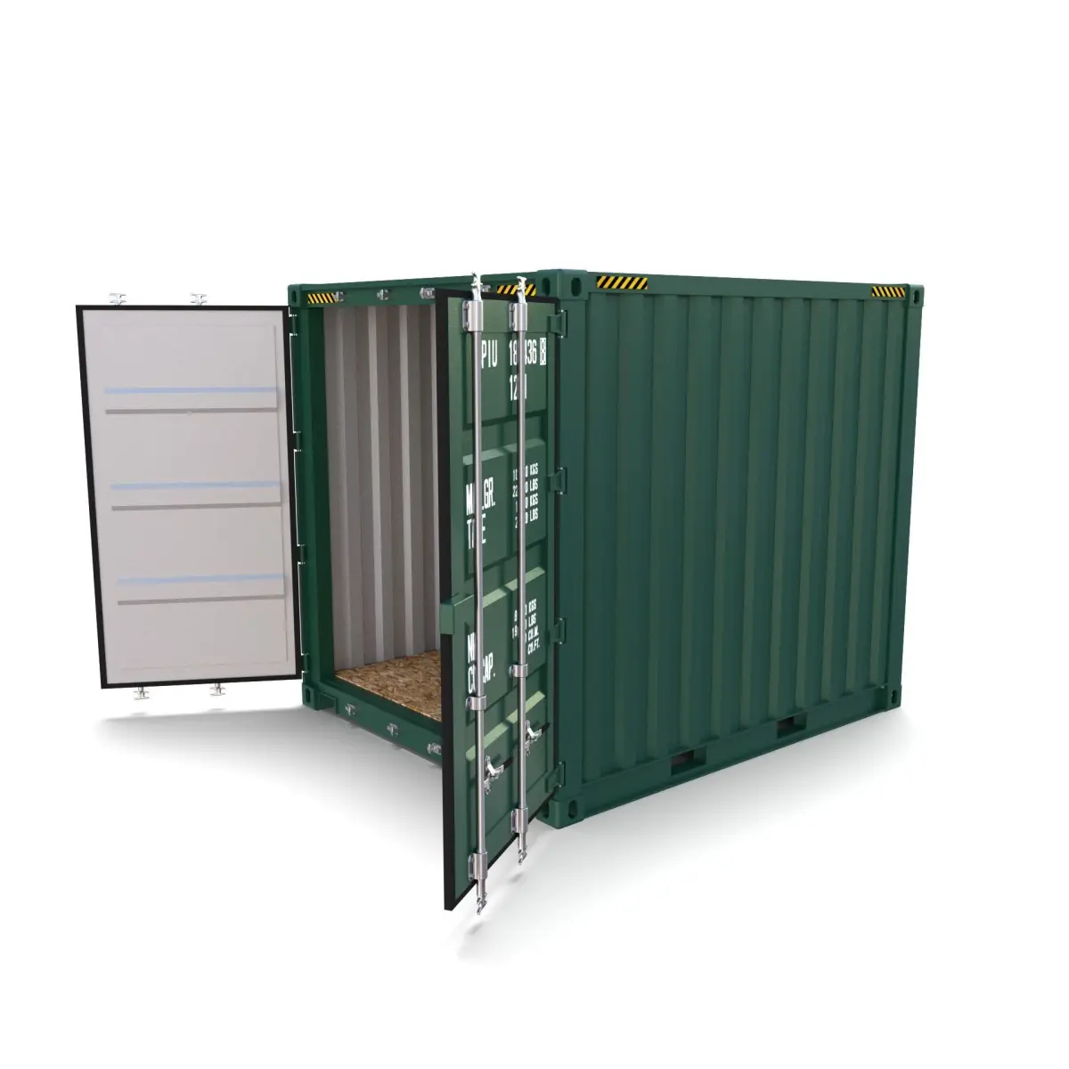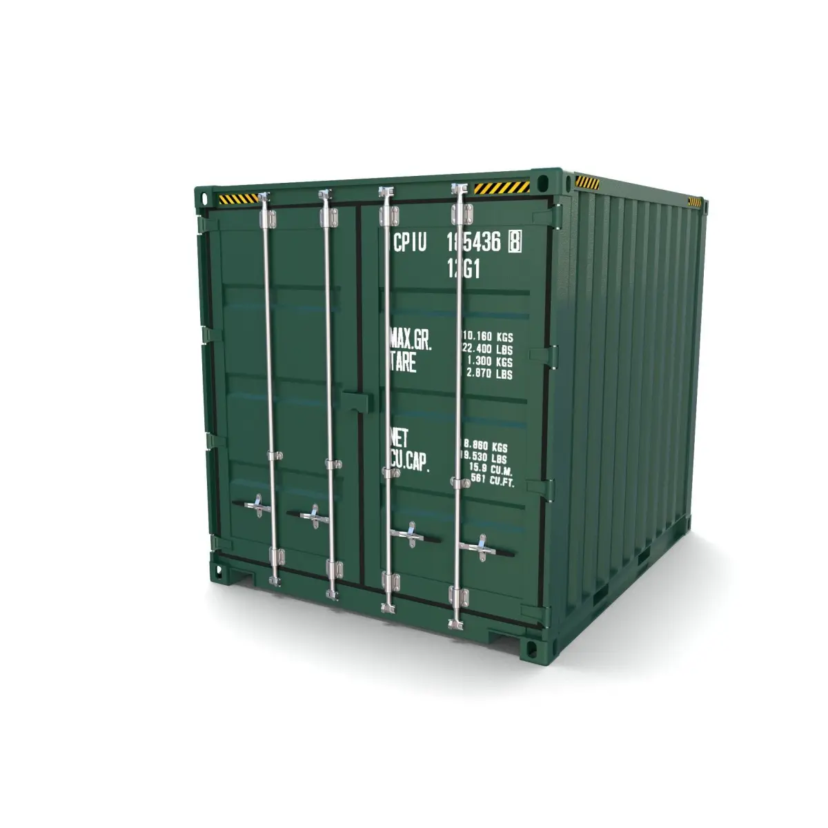 10ft Shipping Container 3D Model, built to specs, available in both closed and open variants, for easy import and use.
