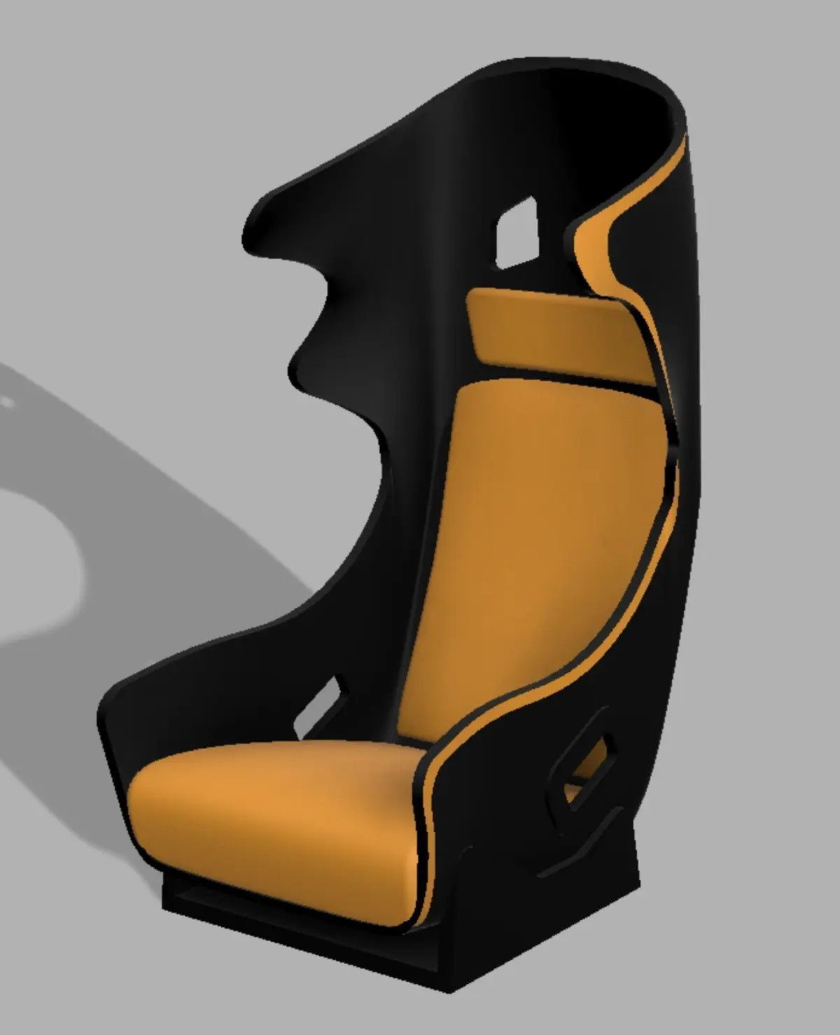 A seat I made for my rock racer with a sporty look. Will be using this for my drift cars as well. It has two mounting holes underneath with a diameter of 2.8mm which I have found will be a good fit for 3mm screws on most printers.