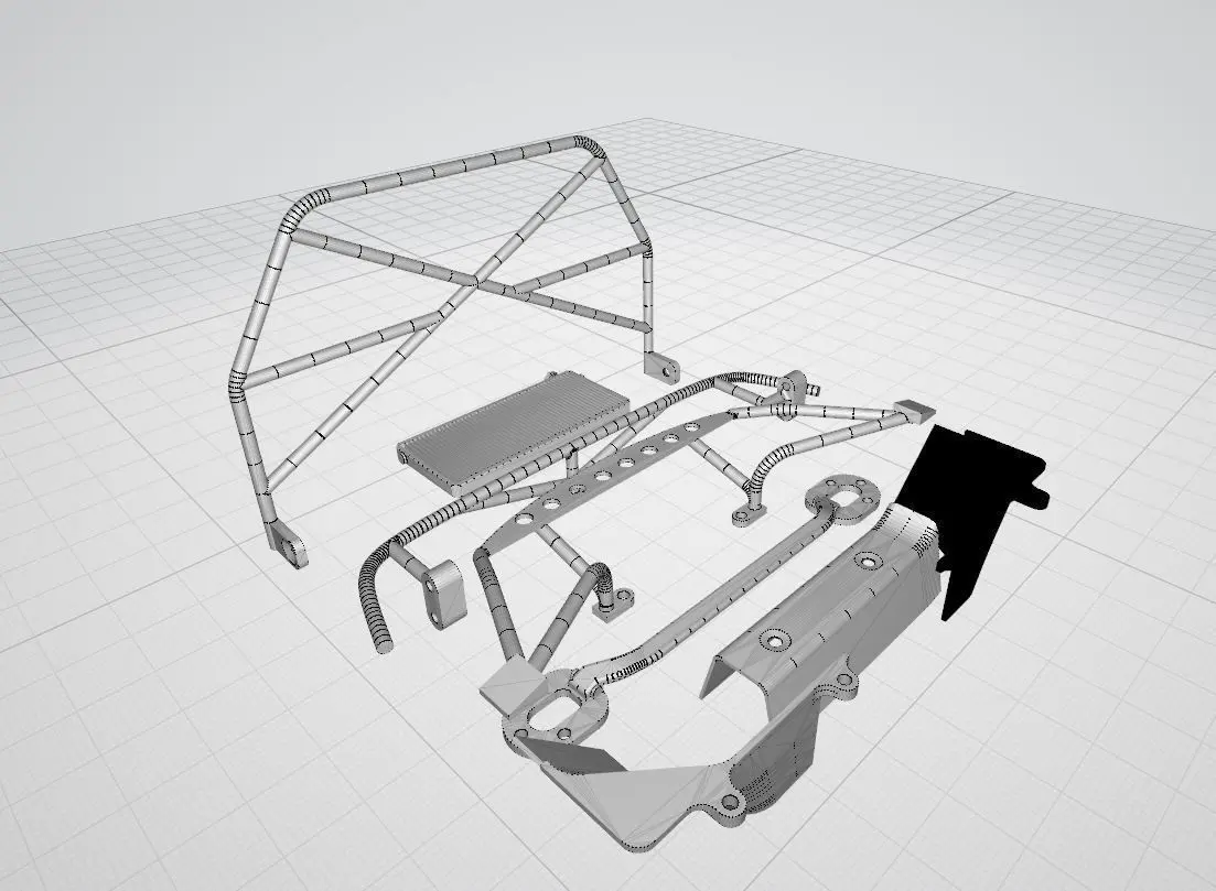 This is a scale accessories pack for Rhinomax II chassis. It consists of multiple parts, which are secured to the chassis by M3 bolts and are fully detachable.