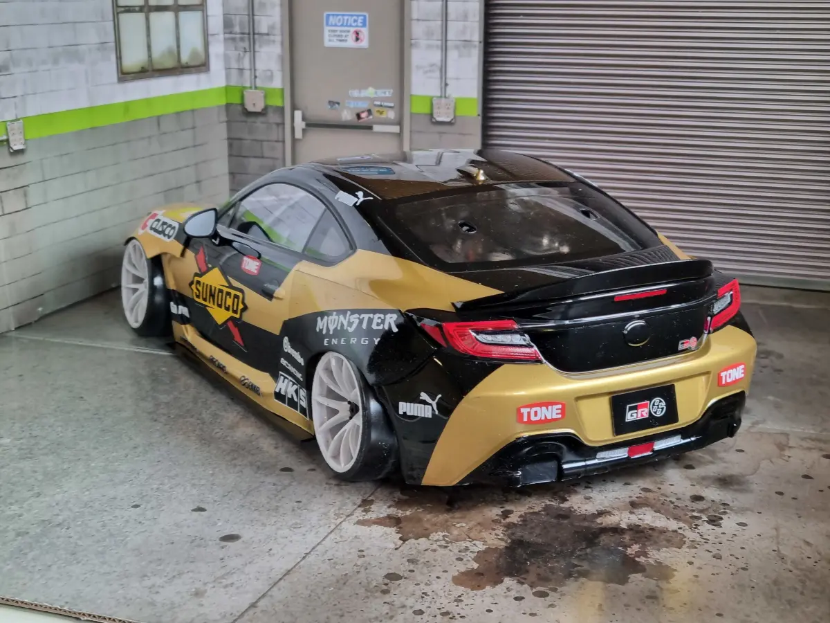 This is a body wide kit for Tamiya GR86 body, which takes it from 190mm to 200mm width.On the sample photo you can see a fitment on stock Sakura D5 MR chassis with +5mm offset wheels.