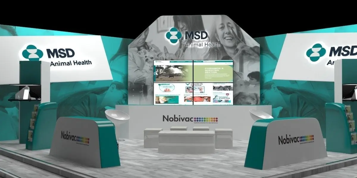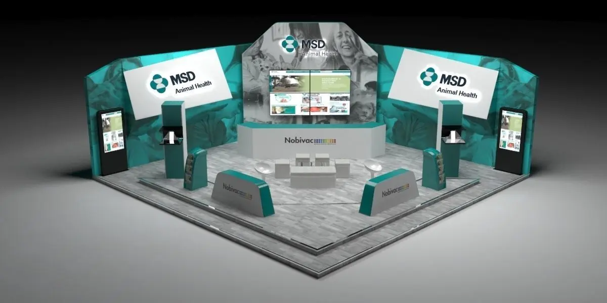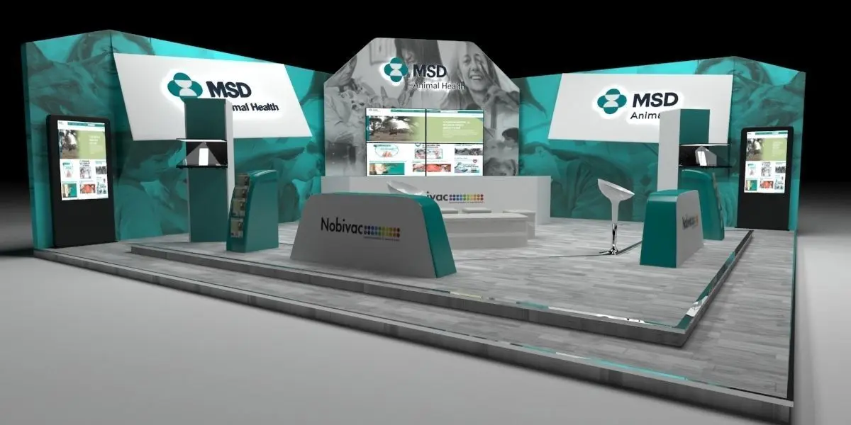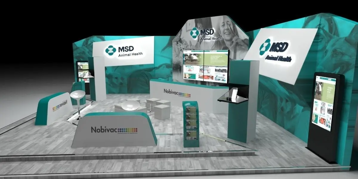 10x6 stand for pharmaceuticals, with led screens, holograms, tactile screens, counters for attention and a led screen