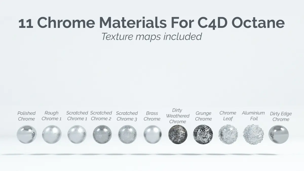 This file contains 11 Chrome materials for Octane render for Cinema4D.