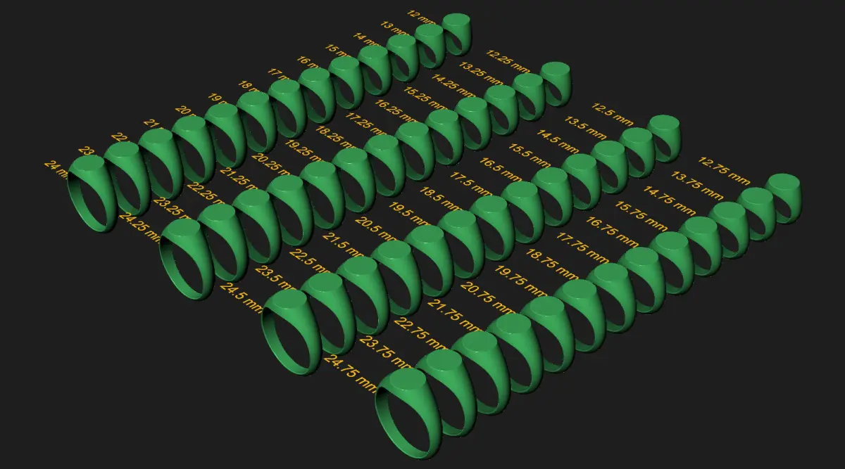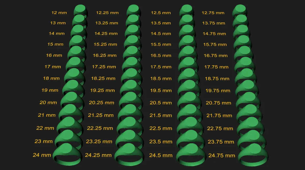 fourth .3DM file 12.75 mm - 24.75 mm (13 ring sizes)