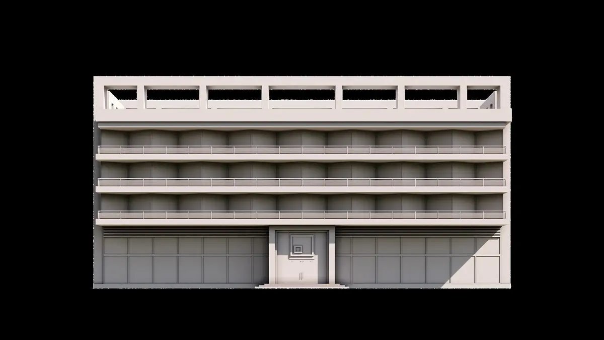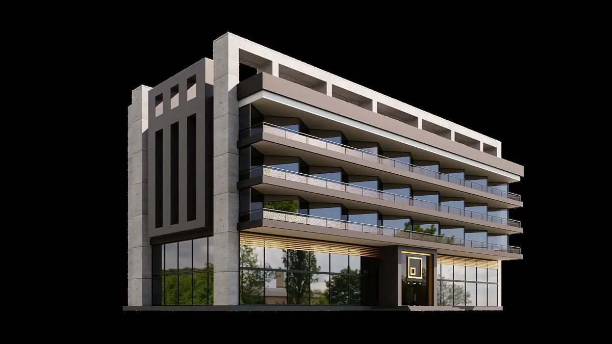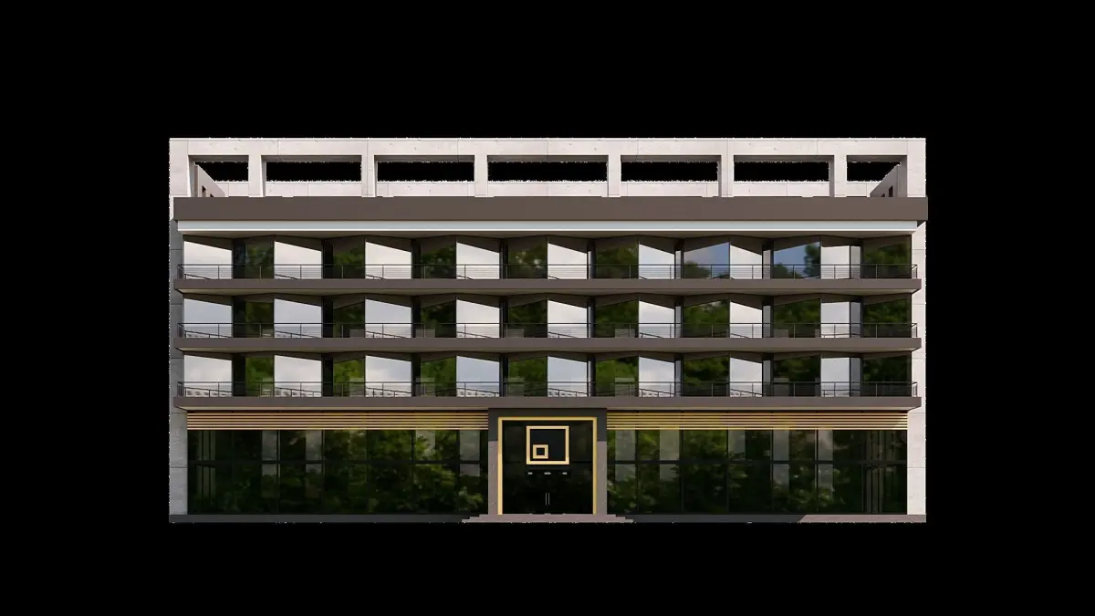 The architecture of the building in the image is modern and contemporary, with a focus on clean lines and minimalistic design elements.The use of glass for the front facade adds a sense of openness and transparency to the structure, while the white and black color scheme creates a striking contrast and adds visual interest.The balcony on the side of the building provides an additional architectural feature, enhancing the overall esthetic of the structure.Overall, the architecture of this building showcases a blend of modern and minimalistic design principles, resulting in a visually appealing and functional structure.