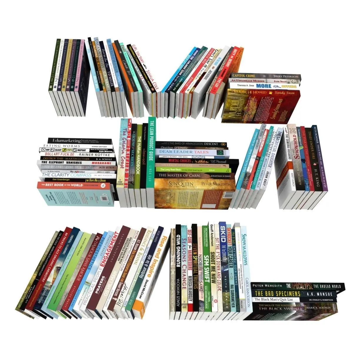 110 different books are modeled. Their coatings are carefully covered. Books are grouped. When you open it, you can sort the books according to your own intelligence. Each book consists of two elements when you select the element in the editablepoly tab. So it is very easy to change the coating.Coating: haveSize: mm